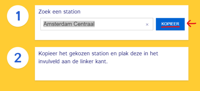 Plak het gekozen station in het invulveld aan de linker kant onder Station.